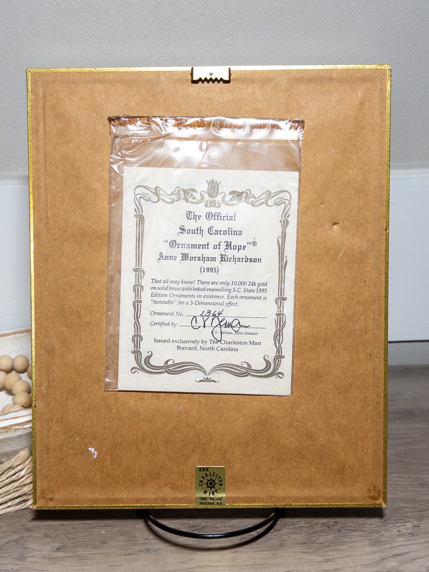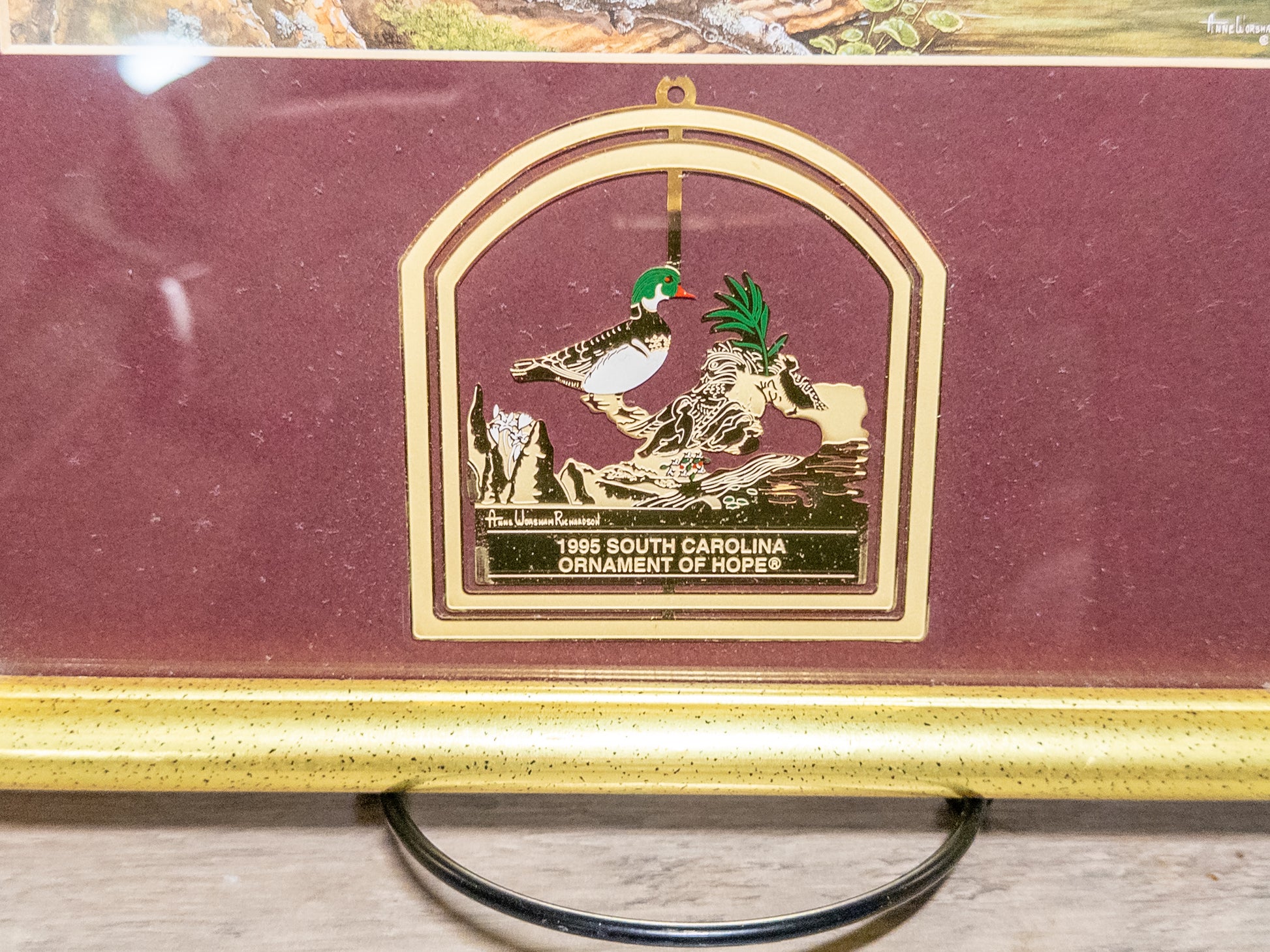 1995 Official South Carolina “Ornament of Hope” – Wood Duck Family Framed Display