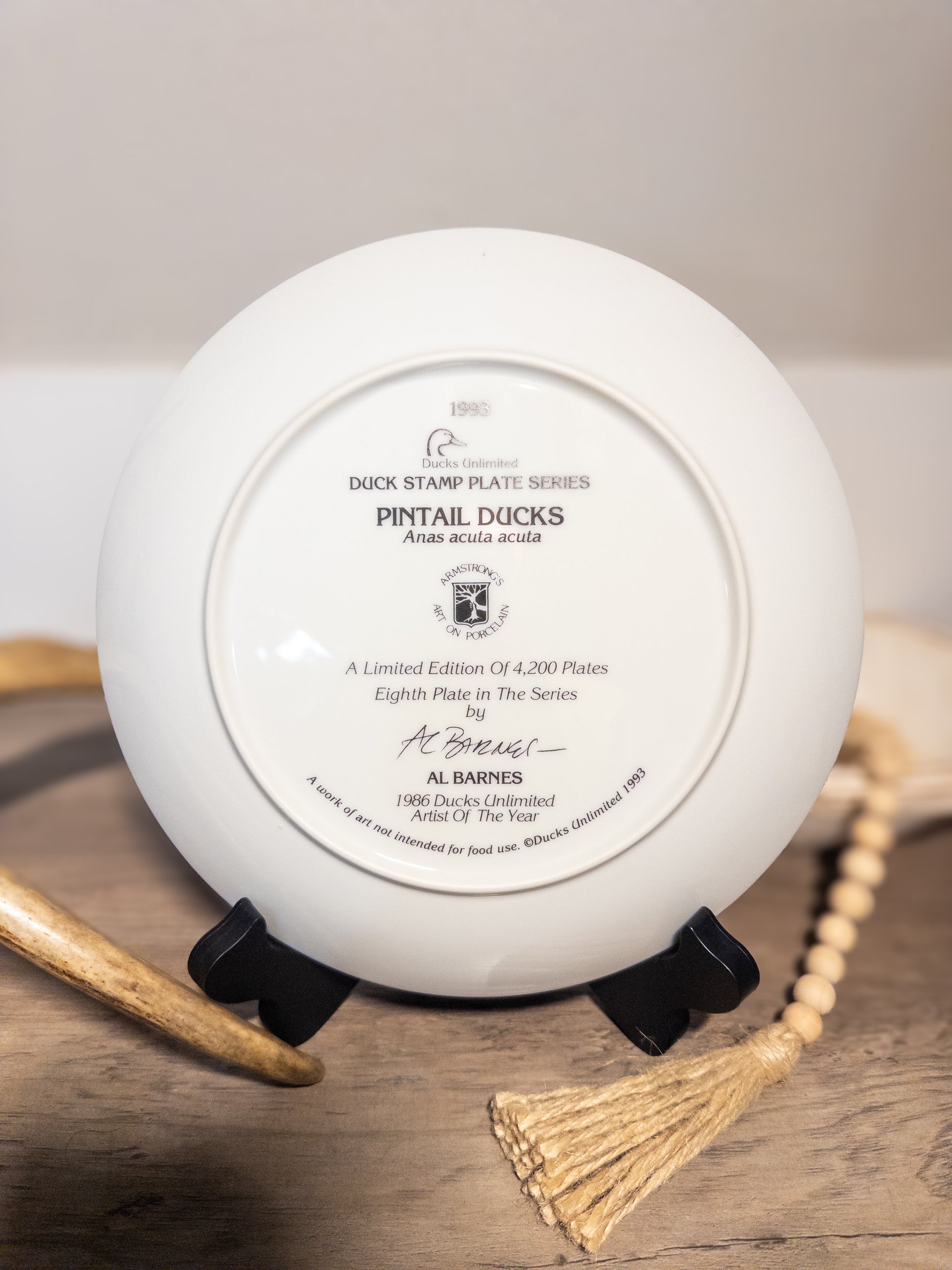 Bring classic waterfowl art into your home with this beautiful Ducks Unlimited “Pintail Ducks” collector plate by renowned wildlife artist Al Barnes — Ducks Unlimited 1986 Artist of the Year.