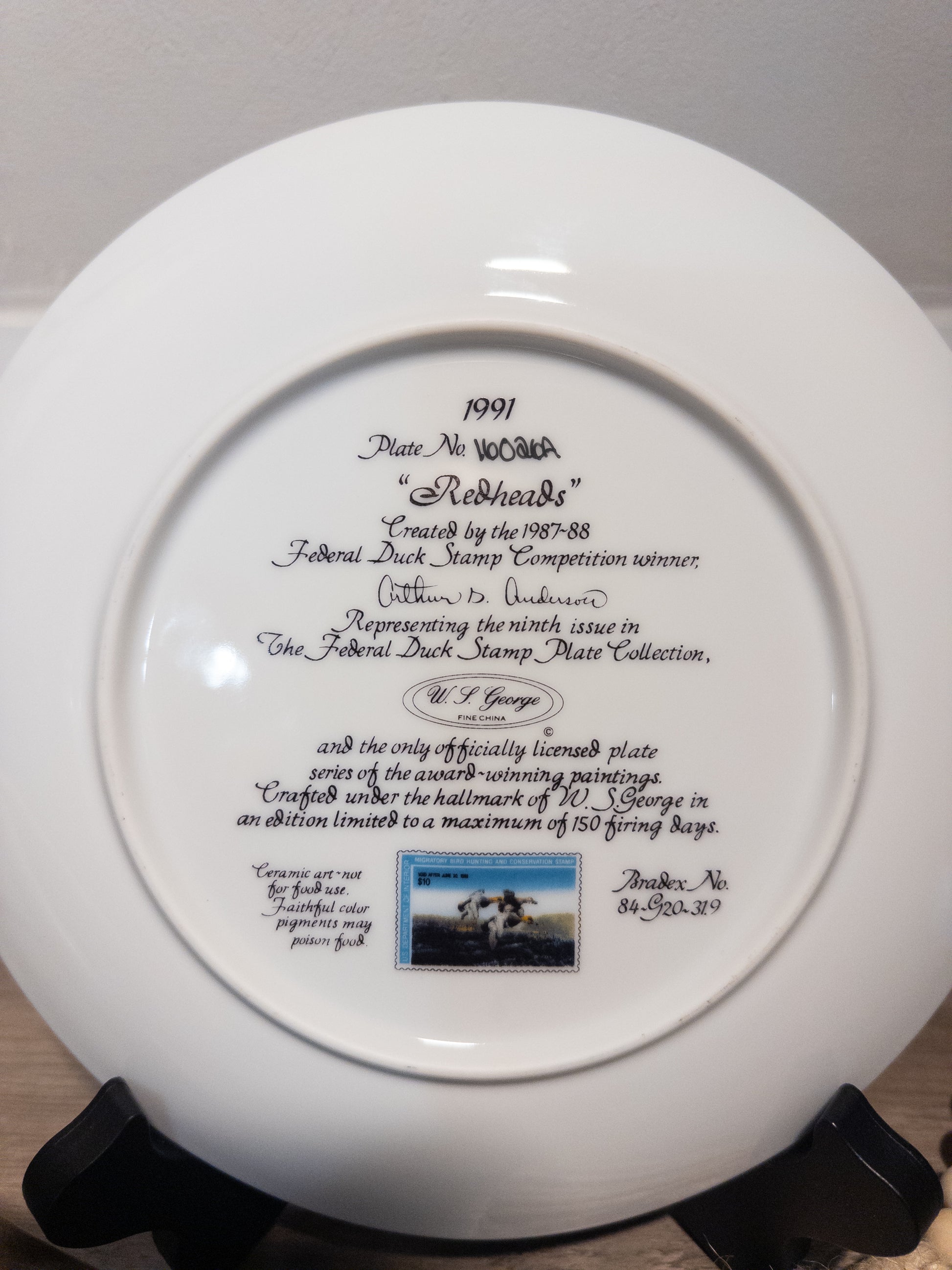 Redheads Federal Duck Stamp Plate 1991 Arthur D. Anderson W.S. George