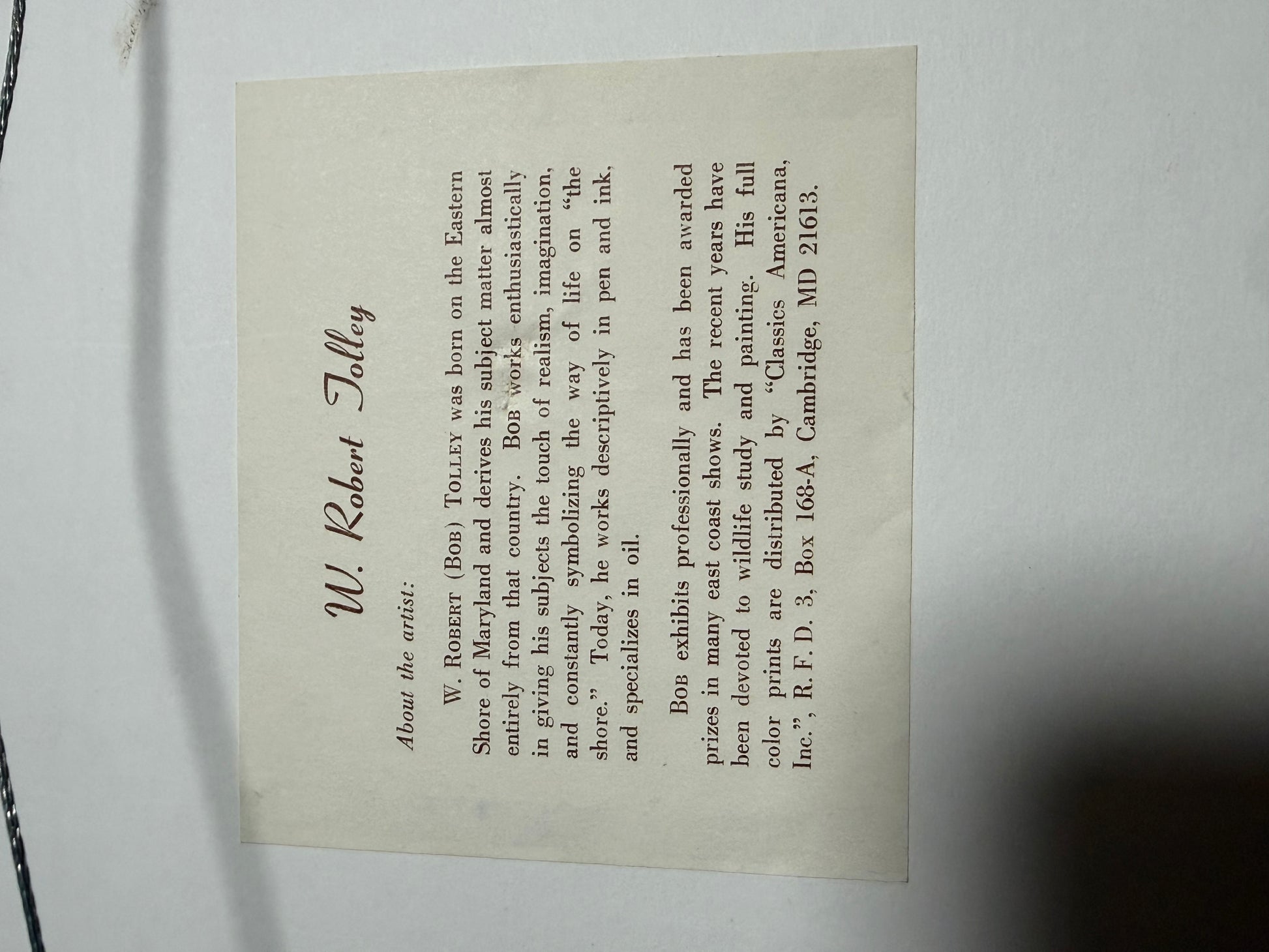 Bring the quiet beauty of winter wetlands into your space with Silent Run, a signed limited-edition wildlife art print by renowned artist W. Robert (Bob) Tolley. This peaceful scene captures a group of Canada geese gliding through icy waters, rendered with Tolley’s signature realism and attention to natural detail.