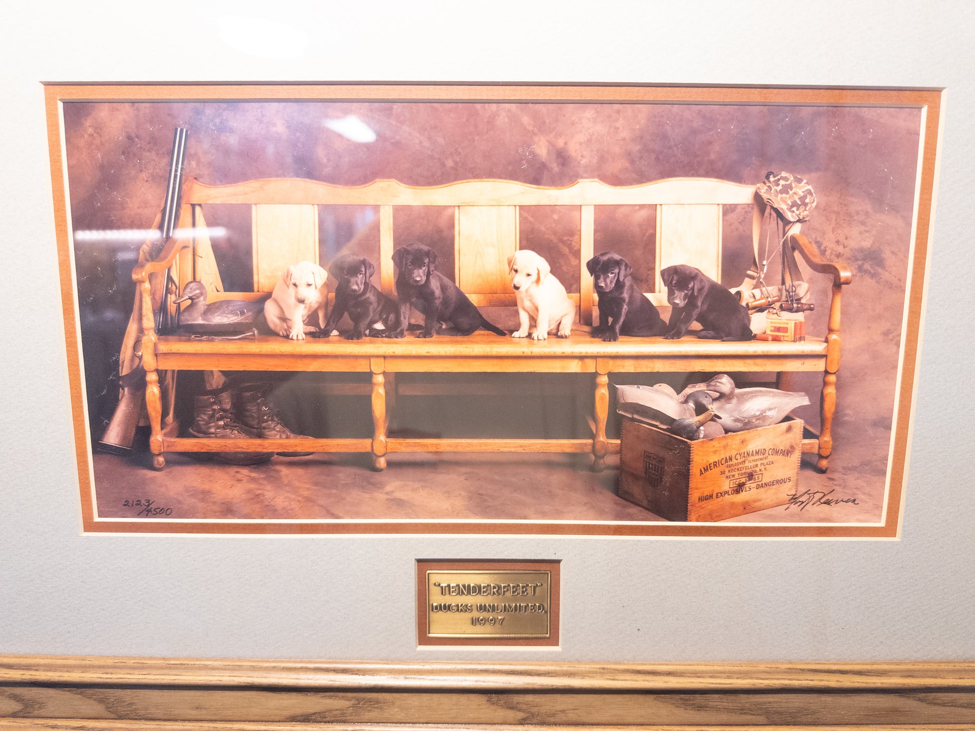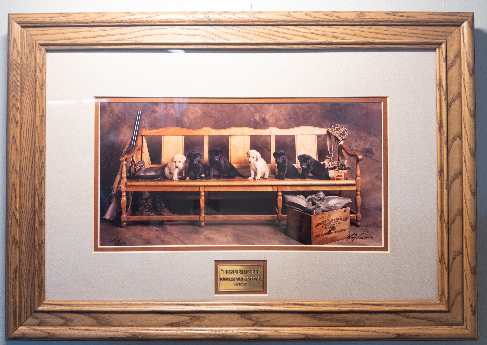 “Tenderfeet” Ducks Unlimited Labrador Puppy Print Signed Jim Killen 2123/4500 Framed 21x15 1997