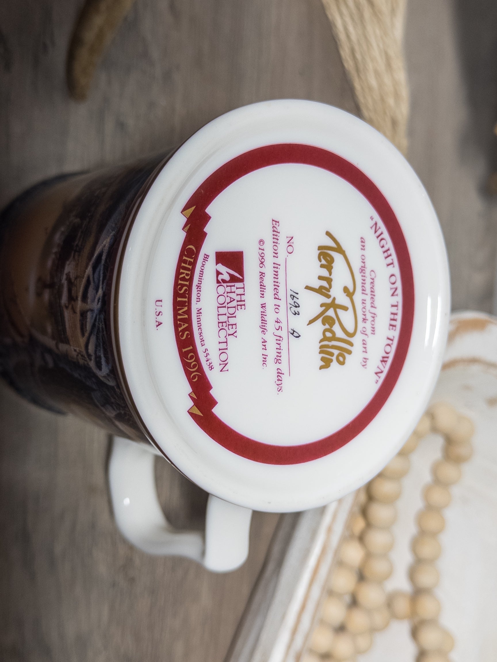 Released for Christmas 1996, this collectible stein is hand-numbered and made in the USA, making it a perfect addition to any Terry Redlin, wildlife art, or holiday décor collection.