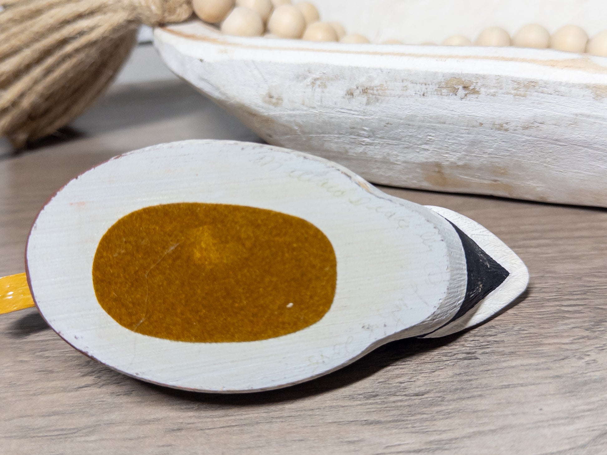 Carved from solid wood and finished in traditional working-decoy style, this piece features detailed feather carving, realistic Mallard coloration, and a felt-lined base to protect shelves and furniture.